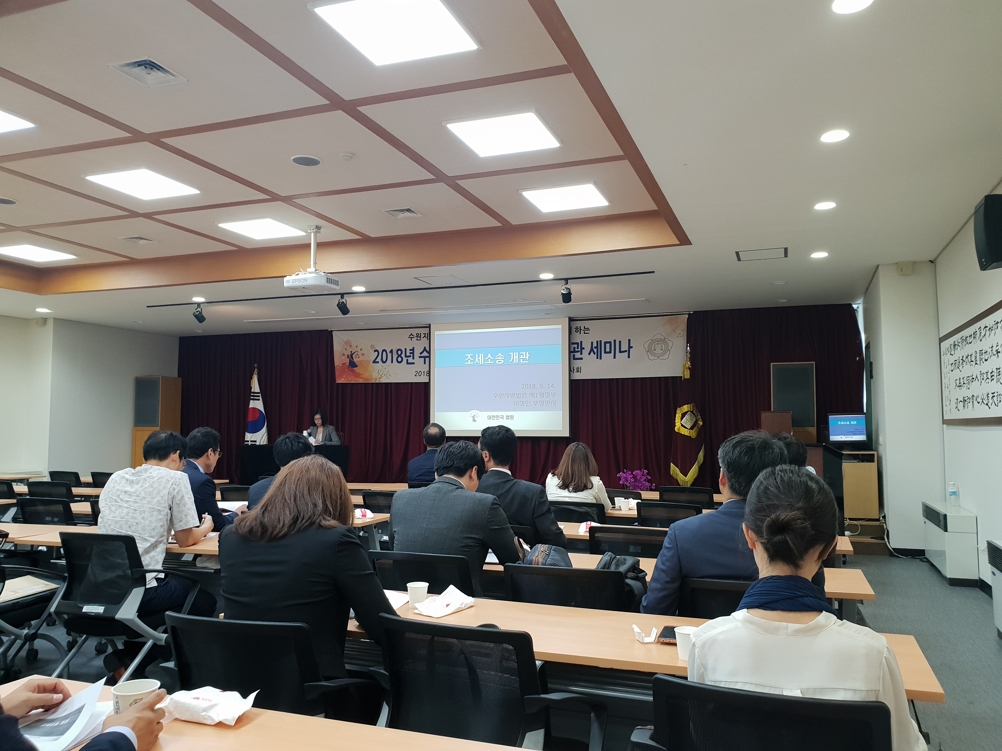 본 세미나에는 수원지방법원 제1행정부 이정민 부장판사님과 수원지방법원 판사님, 경기중앙지방변호사회 소속 변호사님 약 30여명이 참석하여 조세소송 개관에 대한 세미나가 진행되었습니다.