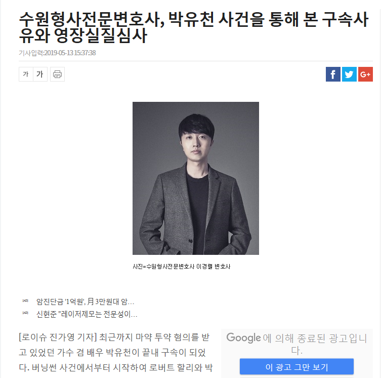 법률사무소 고운의 이경렬변호사님은 “박유천 사건을 통해 본 구속사유와 영장실질심사”에 대하여 로이슈의 진가영 기자님으로부터 인터뷰를 요청받았습니다.