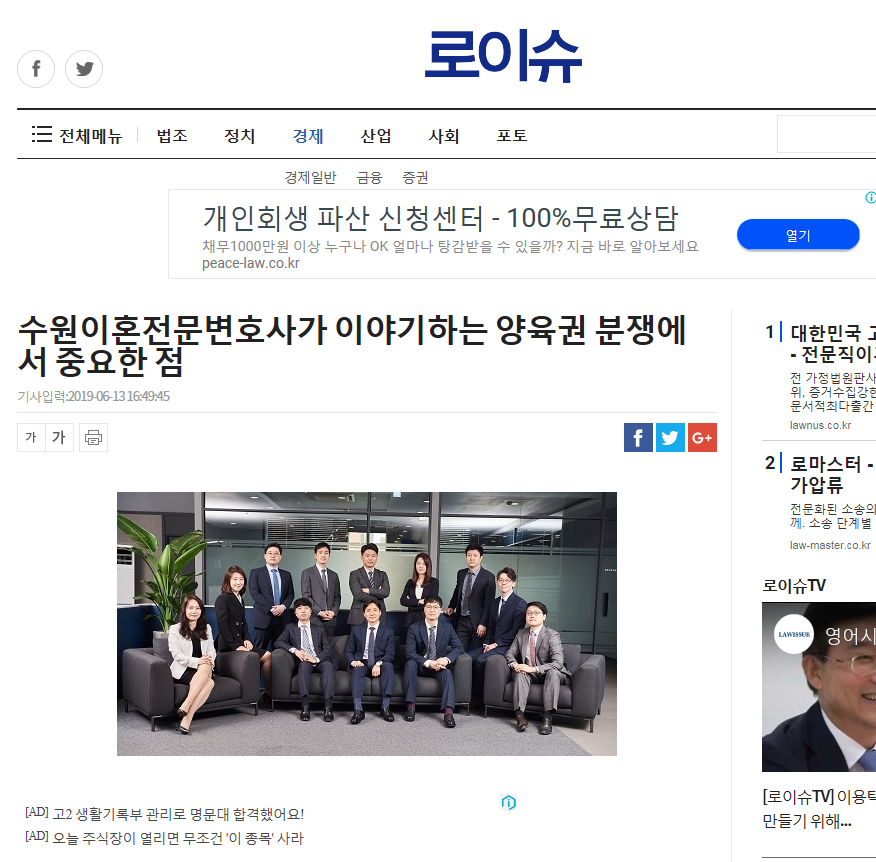 * 김민정변호사님, 로이슈에 “수원이혼전문변호사가 이야기하는 양육권 분쟁에서 중요한 점”으로 게재