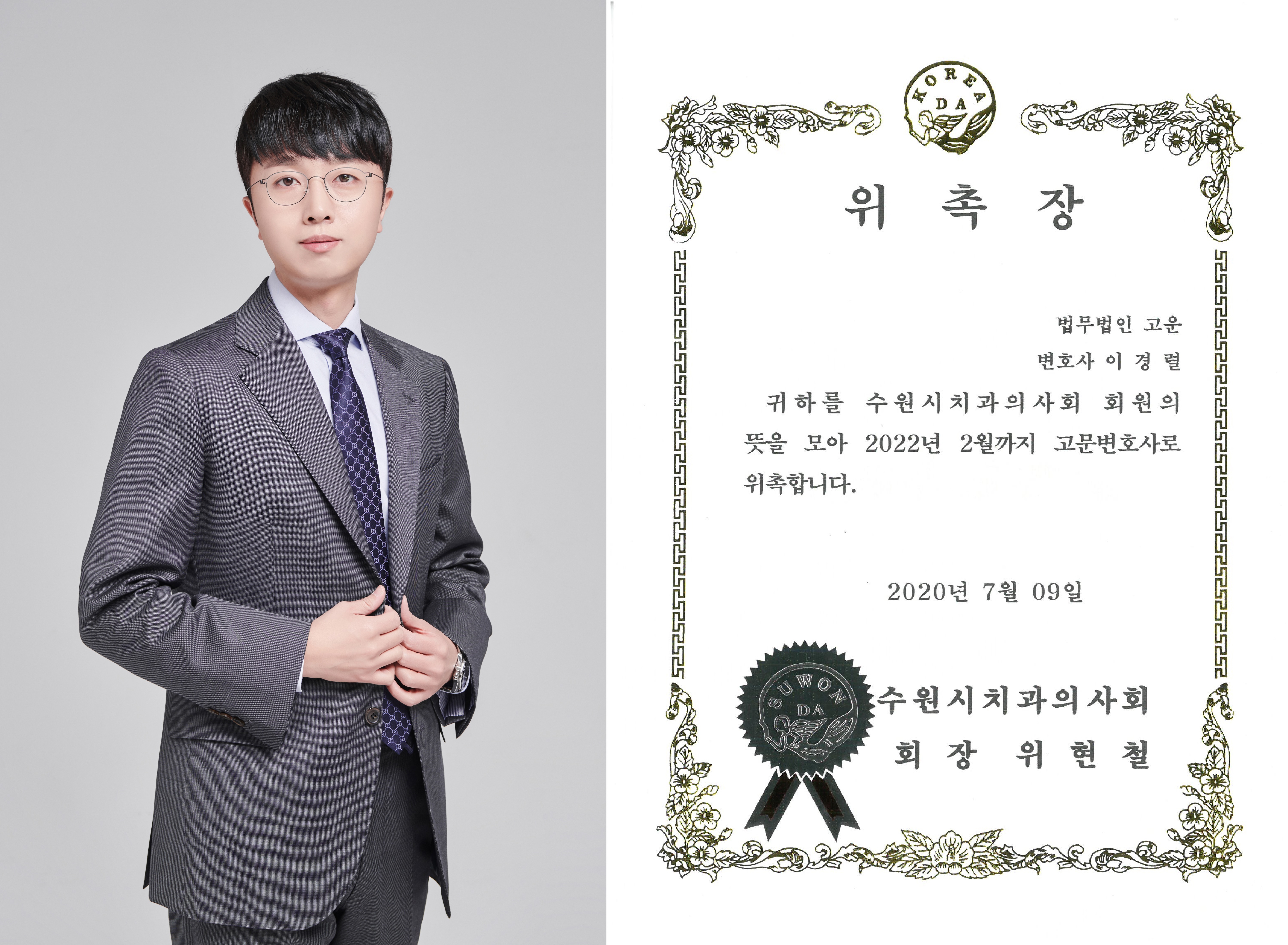 고운의 이경렬변호사님은 2018년부터 현재까지 수원시치과의사협회 고문변호사로 활동중이십니다.