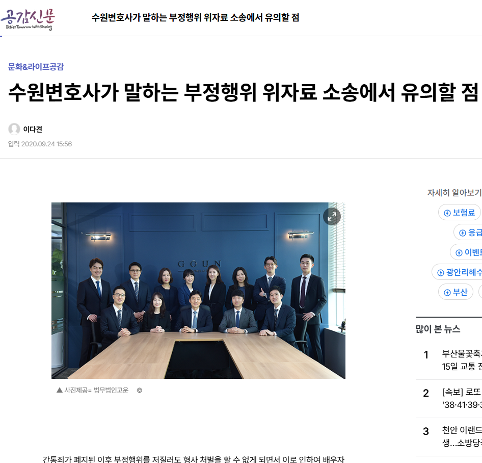* 공감신문에 “수원변호사가 말하는 부정행위 위자료 소송에서 유의할 점”으로 게재