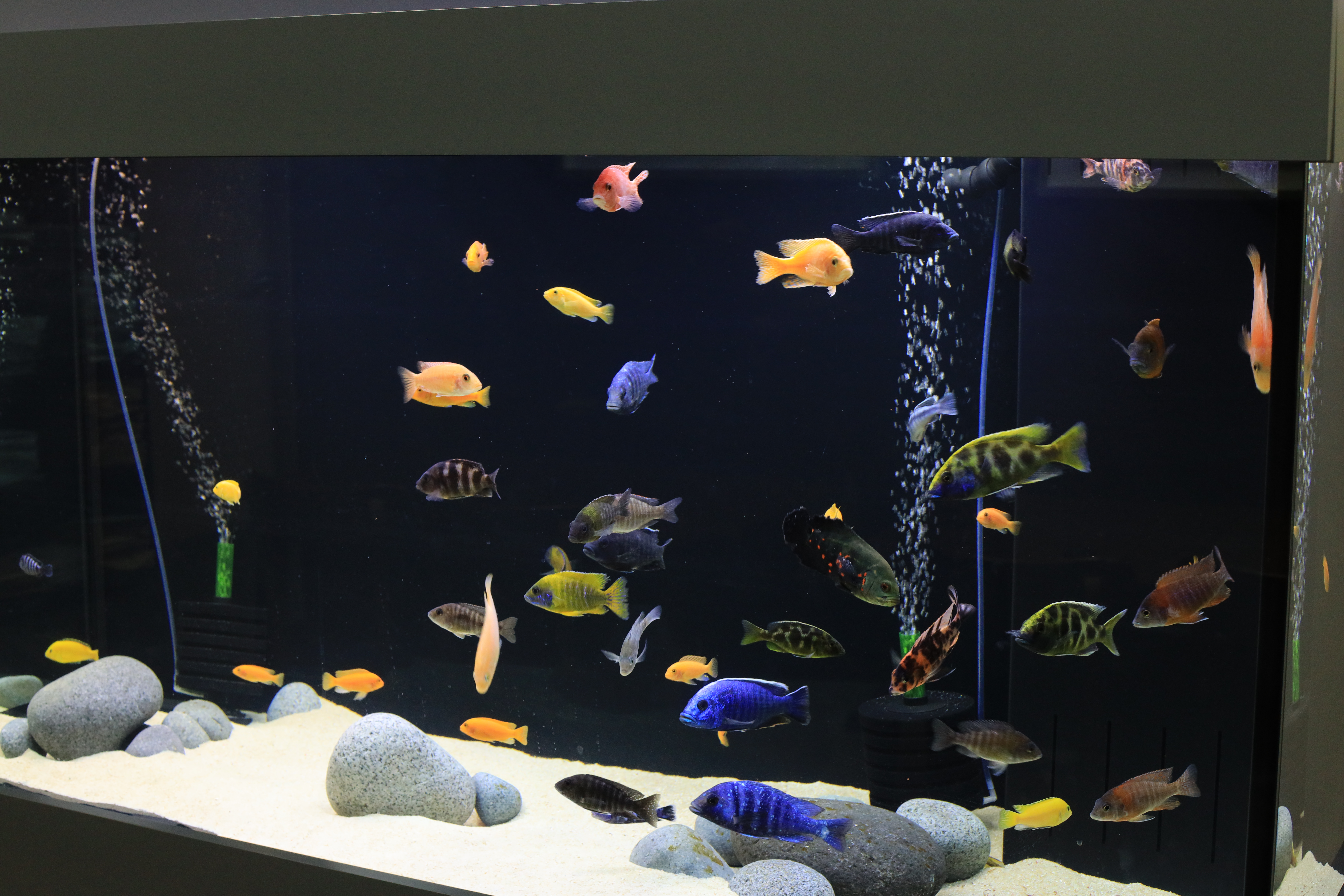 이번에 설치한 아쿠아수조에는 30여마리의 물고기들이 자유롭게 헤엄치고있습니다.