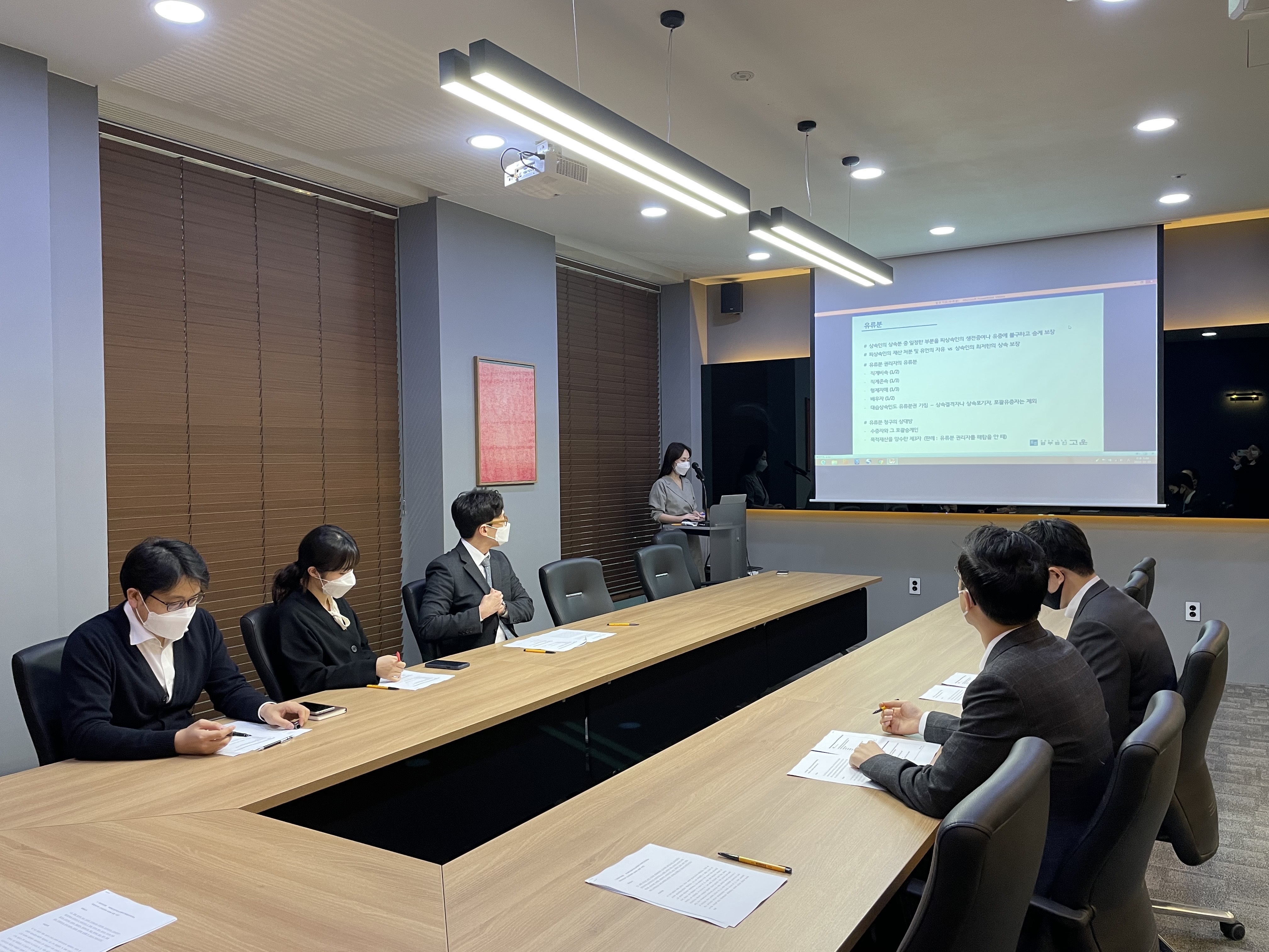 이 날 발표는 민사팀 소속변호사님이신 김민정변호사님께서 유류분을 주제로, 권혁채변호사님께서는 민사판례를 중심으로 발표하셨으며, 두분의 발표 이후 이와 연관된 심층적 토론이 이어졌습니다.