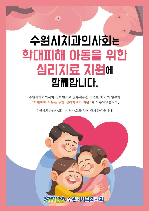 경기도치과의사회관 5층 대강당에서 진행된 이번 행사는 아동학대 심리치료비 지원행사로 기획되었으며, 이 날 모금된 기부금은 사회복지법인 ‘꿈을 키우는 집(보육원)’ 시설에 아동학대 심리치료비 용도로 사용처를 지정 기탁하여 전액 기부되었습니다.