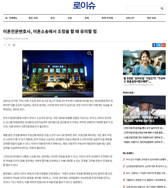 * "이혼전문변호사, 이혼소송에서 조정을 할 때 유의할 점"으로 언론보도