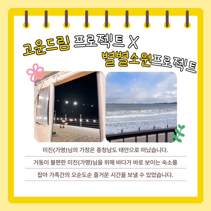 고운드림 프로젝트를 통해 선정된 가족은 1박 2일 동안의 충남 태안지역 바닷가 여행을 다녀왔습니다.