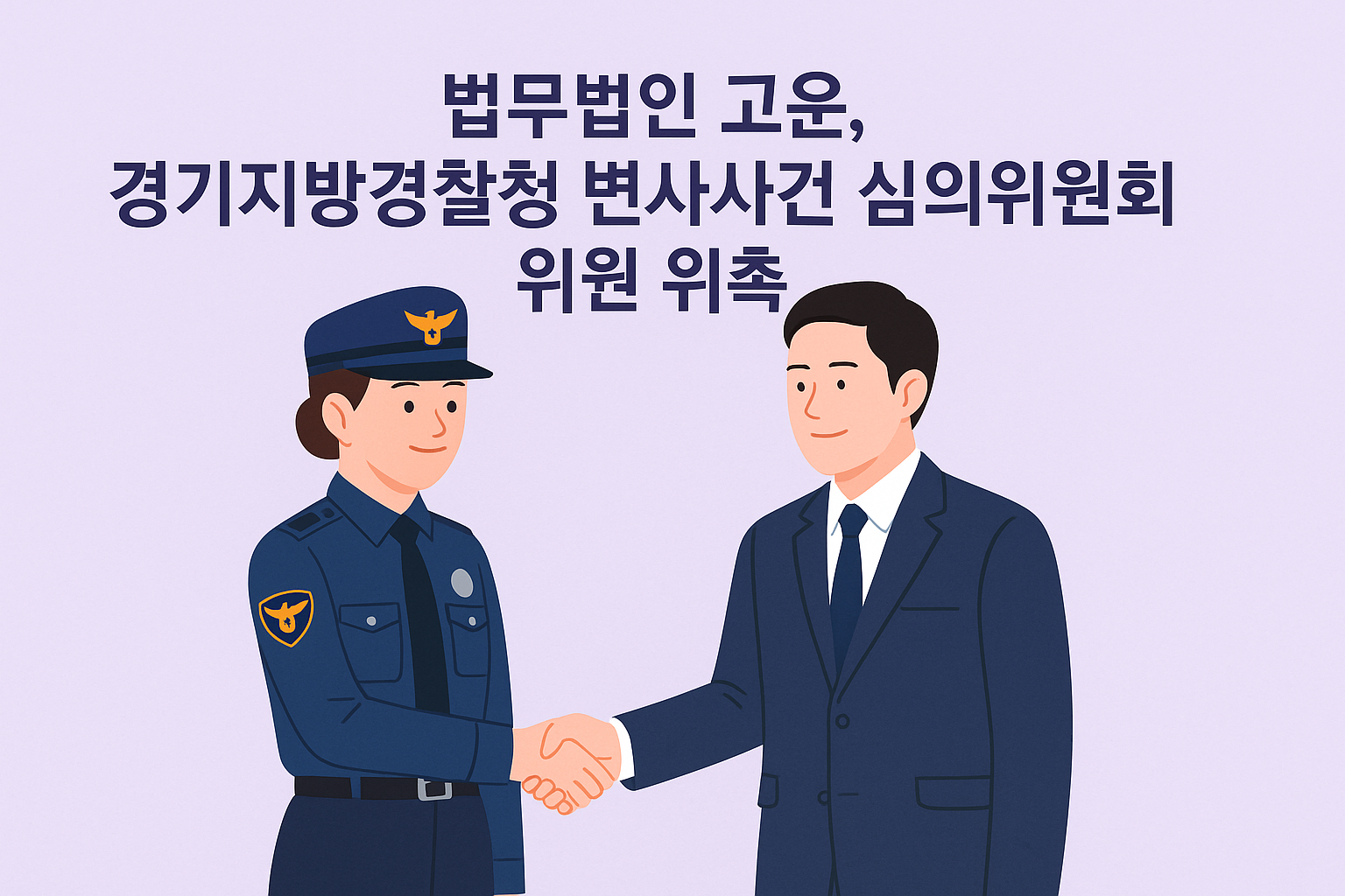 법무법인 고운은 경기지방경찰청으로부터 변사사건 심의위원회 위원으로 공식 위촉되며 공정하고 전문적인 사건 판단에 참여하게 되었습니다.