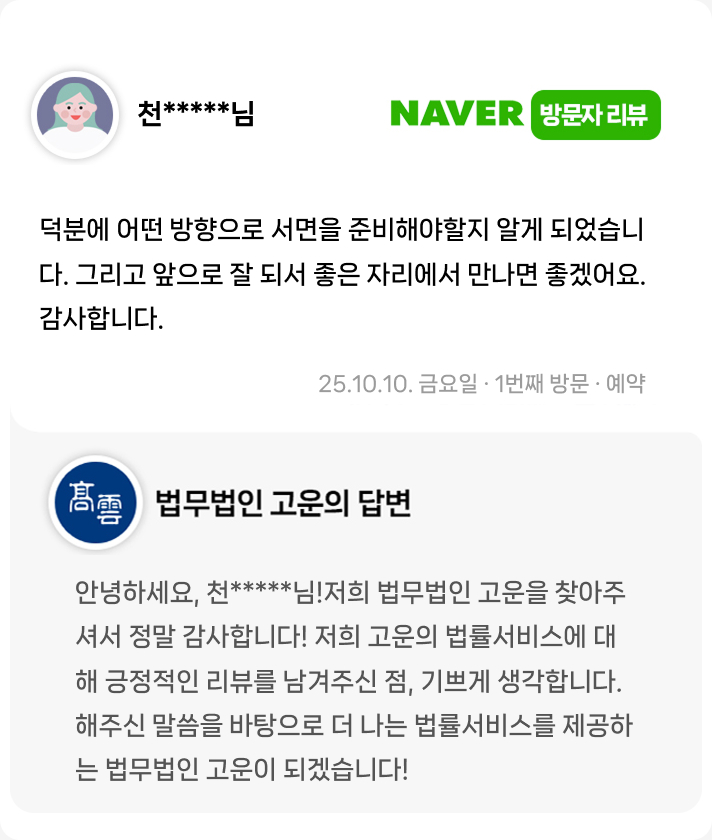 덕분에 어떤 방향으로 서면을 준비해야할지 알게 되었습니다.