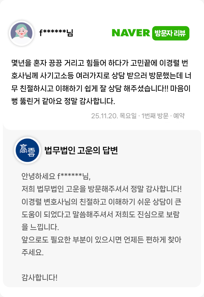 사기 ㅣ 금전거래 과정에서 사기가 의심되어 상담받으러 오신 고객님의 후기