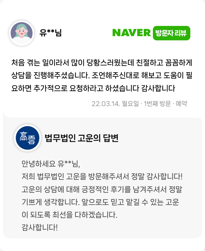 처음 겪는 일이라서 많이 당황스러웠는데 친절하고 꼼꼼하게 상담을 진행해주셨습니다.