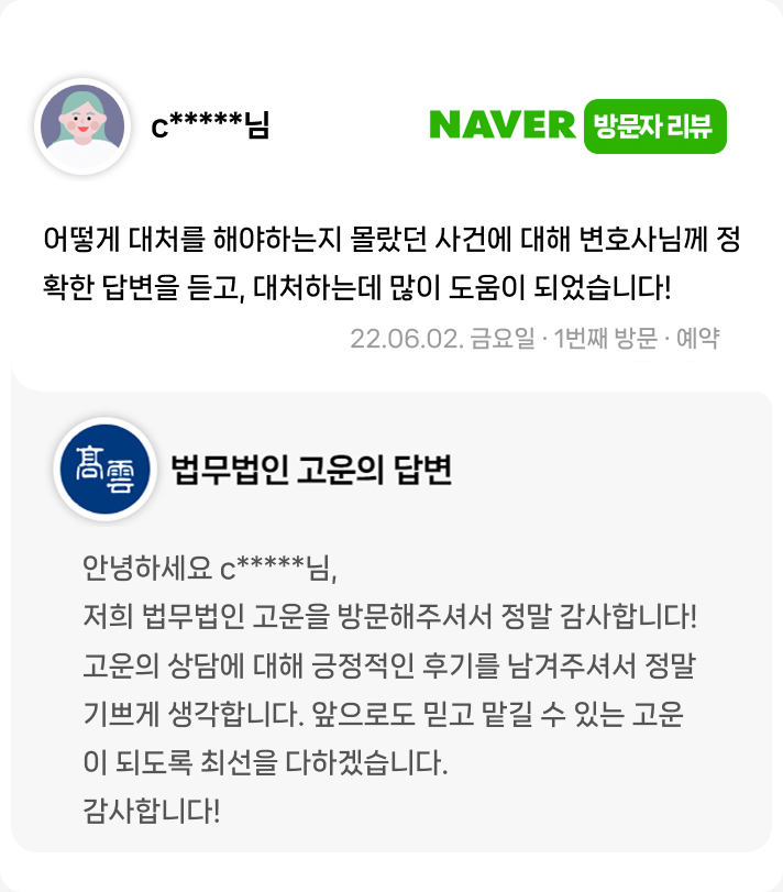 어떻게 대처를 해야하는지 몰랐던 사건에 대해 변호사님께 정확한 답변을 듣고, 대처하는데 많이 도움이 되었습니다!