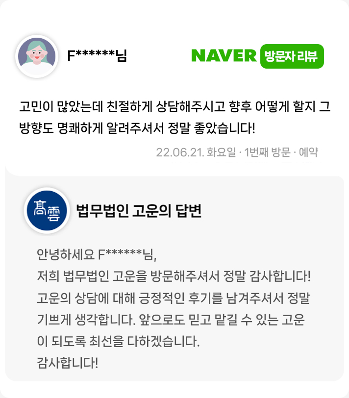 고민이 많았는데 친절하게 상담해주시고 향후 어떻게 할지 그 방향도 명쾌하게 알려주셔서 정말 좋았습니다!