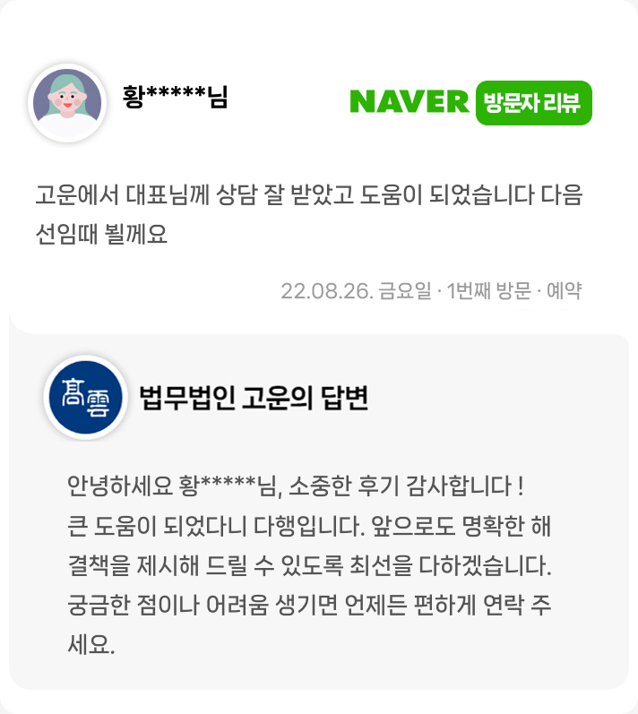 고운에서 대표님께 상담 잘 받았고 도움이 되었습니다 다음 선임때 뵐께요