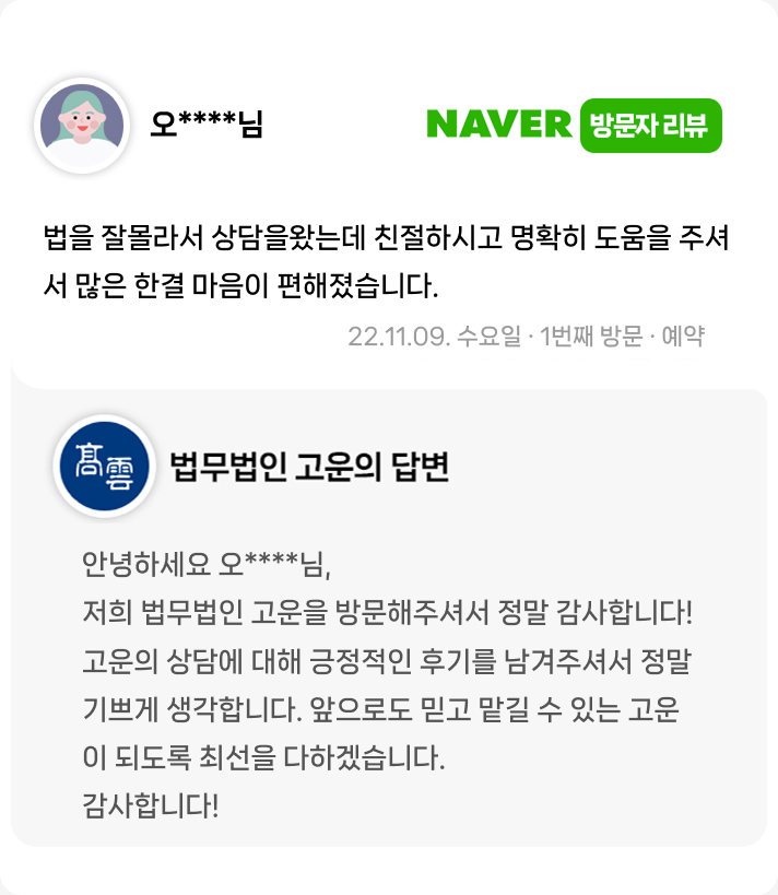 법을 잘몰라서 상담을왔는데 친절하시고 명확히 도움을 주셔서 많은 한결 마음이 편해졌습니다.