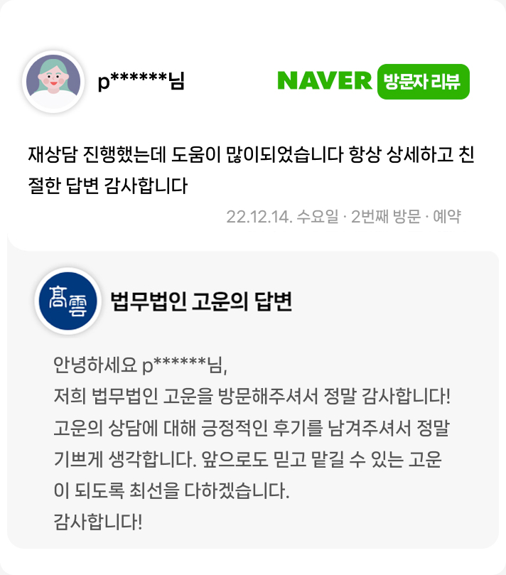 재상담 진행했는데 도움이 많이되었습니다 항상 상세하고 친절한 답변 감사합니다