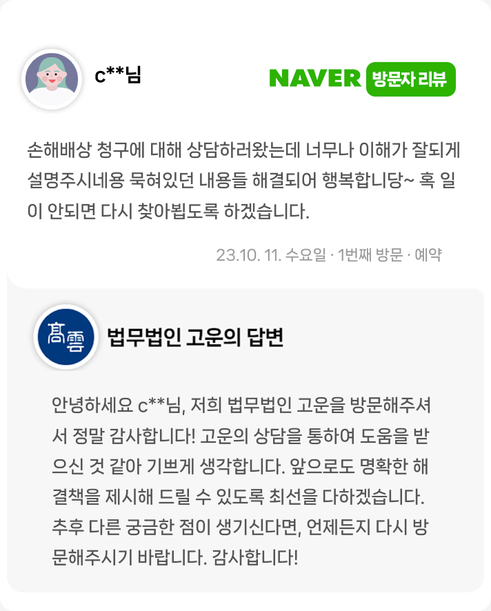 손해배상청구 ㅣ불법행위 또는 계약위반으로 발생한 손해에 대해 손해배상 청구 절차를 상담하기 위해 방문하신 고객님