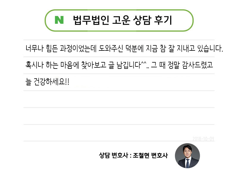 너무나 힘든 과정이었는데 도와주신 덕분에 지금 참 잘 지내고 있습니다.