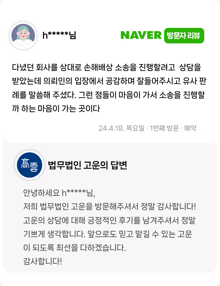 의뢰인의 입장에서 공감하며 잘들어주시고 유사 판례를 말씀해 주셨다.