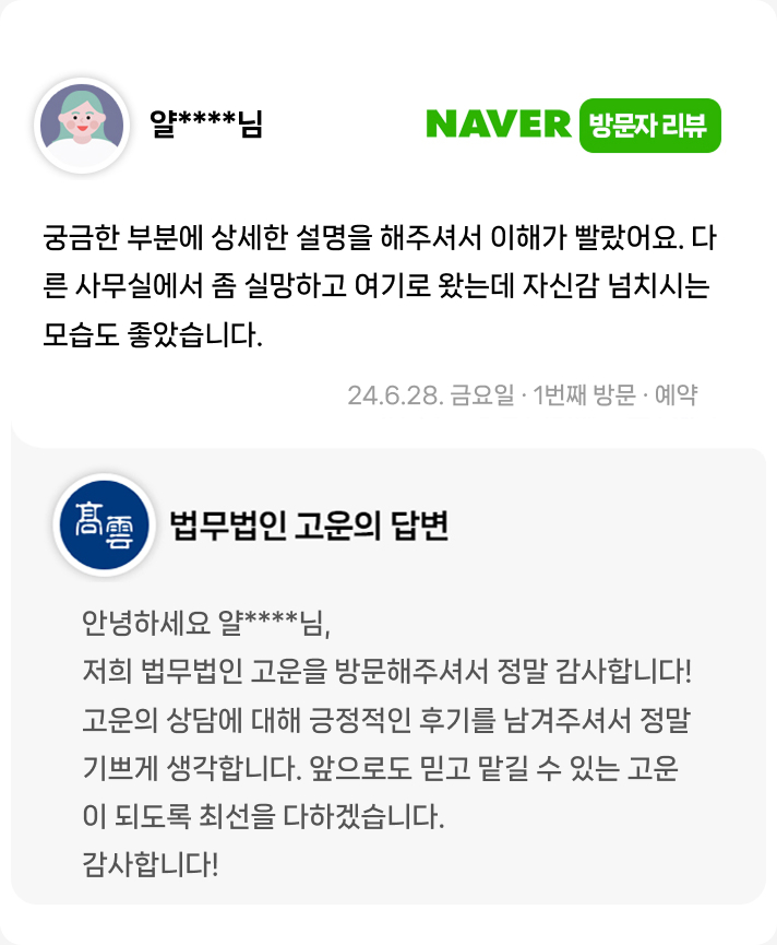 다른 사무실에서 좀 실망하고 여기로 왔는데 자신감 넘치시는 모습도 좋았습니다.