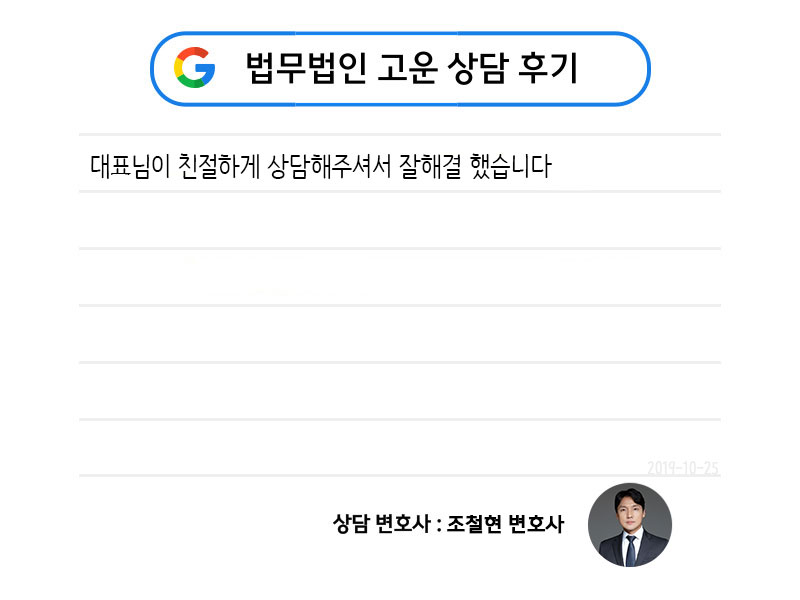 평이 좋은 이유를 알겠더라구요. 변호사님 상담받아보고 신뢰가 가서 사건 맡기기로했어요.