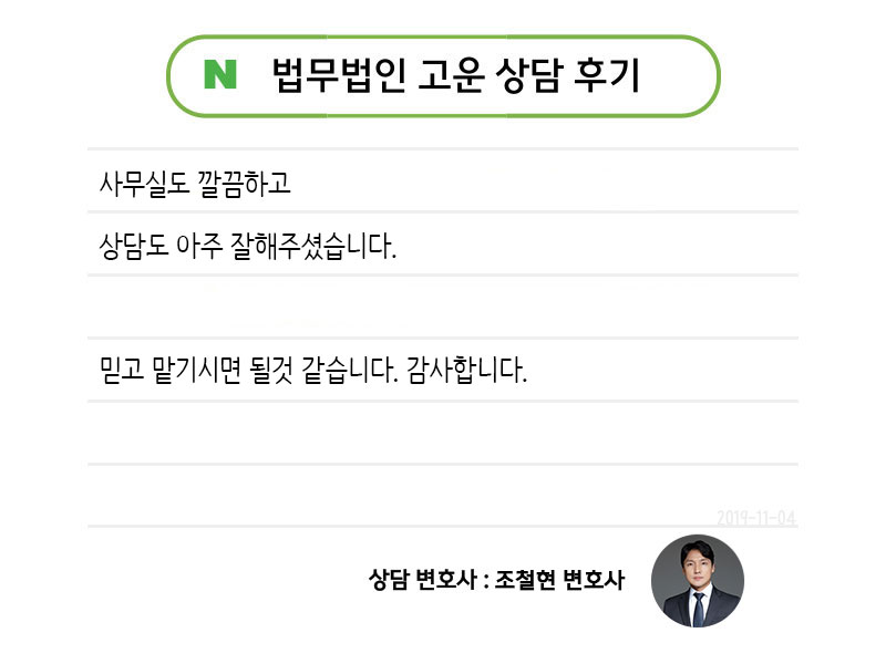 사무실도 깔끔하고 상담도 아주 잘해주셨습니다. 믿고 맡기시면 될것 같습니다. 감사합니다.