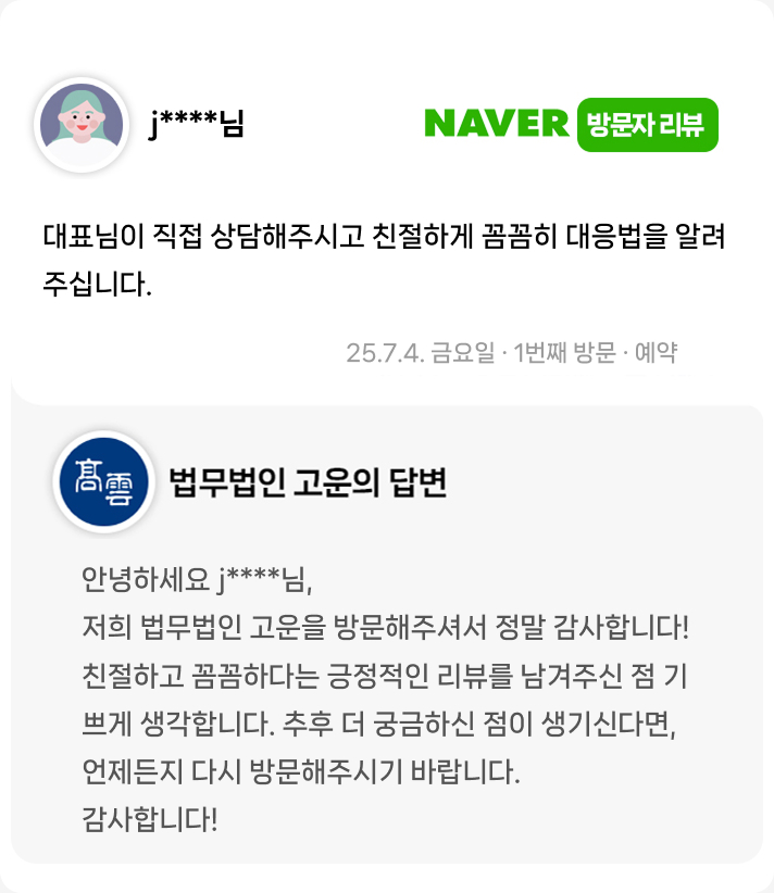대표님이 직접 상담해주시고 친절하게 꼼꼼히 대응법을 알려주십니다.
