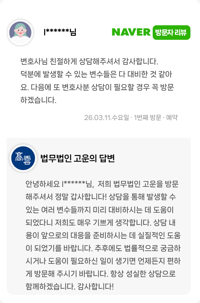 덕분에 발생할 수 있는 변수들은 다 대비한 것 같아요. 다음에 또 상담이 필요할 경우 꼭 방문하겠습니다.