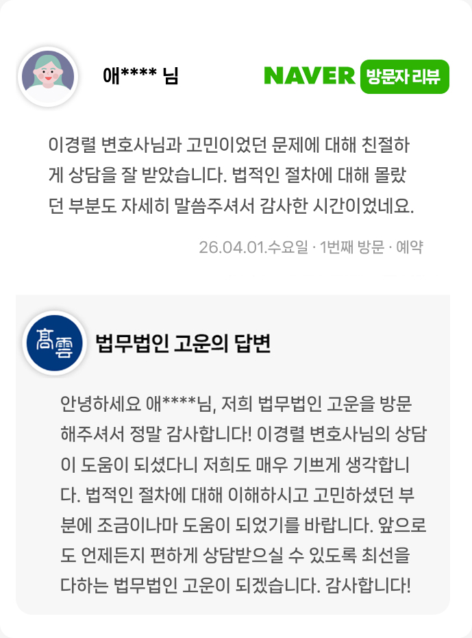 법률 상담은 얼굴을 마주하고 이야기할 때 숨겨진 사실도, 말하지 못한 감정도 함께 풀어낼 수 있습니다. 당신의 이야기를 제대로 듣기 위해 고운은 방문 상담을 원칙으로 합니다 홈페이지에서 편하게 예약하실 수 있습니다.