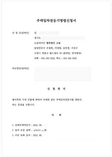 (위 임차권 등기명령신청은 실제로 법무법인 고운이 진행한 사건입니다)