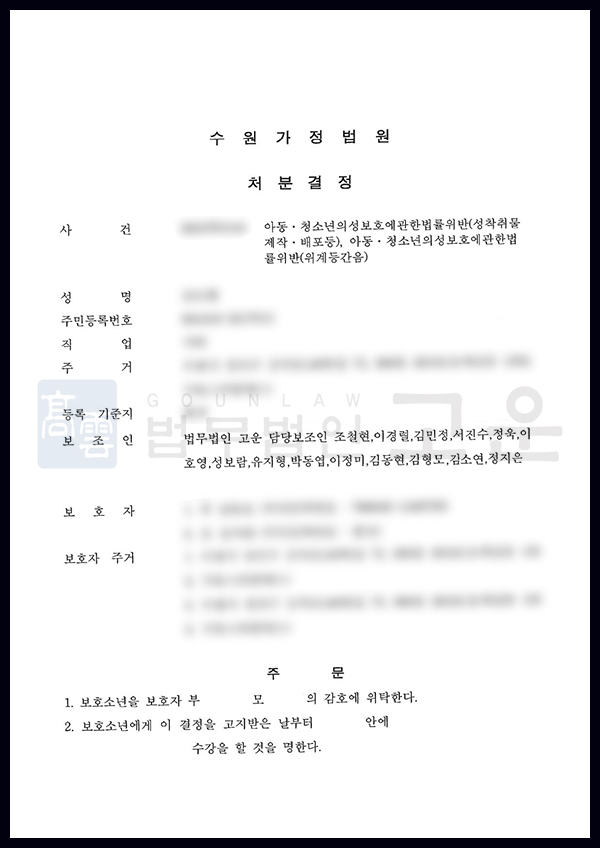 청소년성범죄 I 아청법 위반 및 불법촬영 혐의로 고소된 보호소년을 대리해 경한 보호처분을 받은 사례