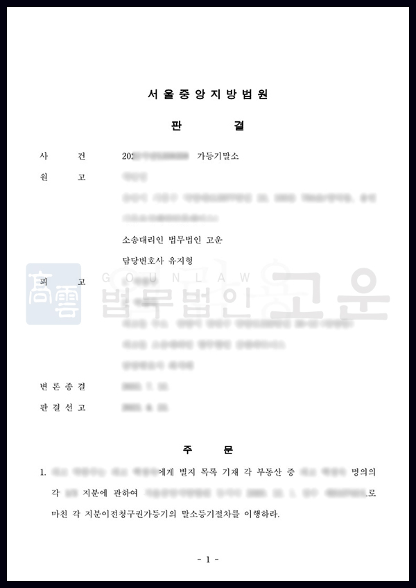 공동상속인 I 공동상속 부동산에 대해 허위 계약 가등기 말소를 청구해 승소한 사례