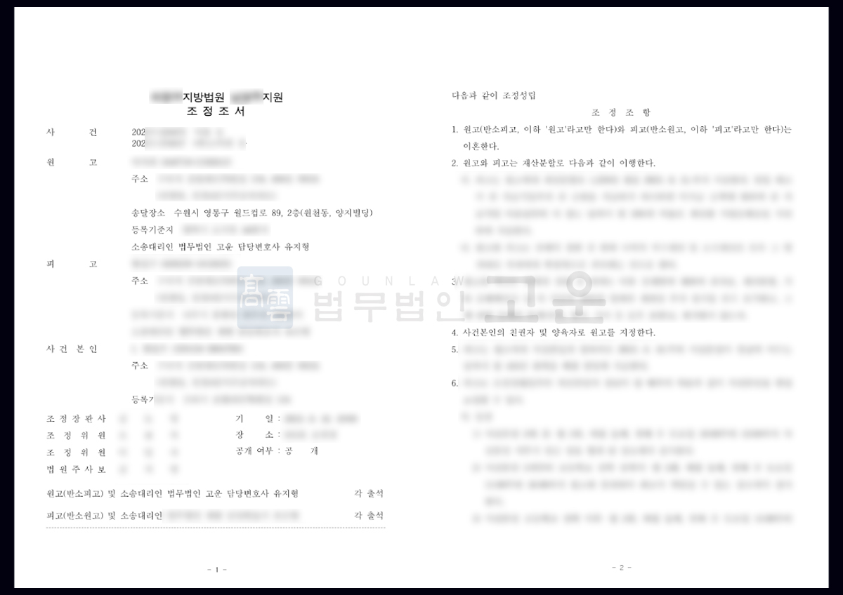 결국 A씨는 기여도를 인정받아 재산분할을 받고, 자녀의 친권자 및 양육자로 지정되며 양육비까지 지급받는 것으로 조정이 성립되었습니다. 자신이 원하던 결과에 A씨는 크게 만족하였습니다.