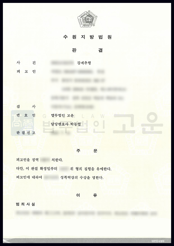 의뢰인 A는 피해자 B의 집에서 함께 술을 마시다 충동적으로 B의 신체를 만졌는데, B가 거부하여 바로 중단한 뒤 사과하였습니다. B도 사과를 받아주어 마무리되는 줄 알았으나, 이후 B로부터 강제추행 혐의로 고소당하였고, A는 이에 대응하기 위해 법무법인 고운을 찾아 사건을 의뢰하였습니다.