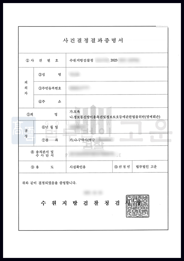 나. B가 올린 게시물에 A의 아이디만 노출되어 특정성이 성립되지 않는다며 불송치 결정을 받았으나, 법무법인 고운은 이전 게시물들에 A의 성명과 나이, 직장 등이 공개되었다는 것을 B의 각종 자료를 통해 입증하고, B의 게시물이 A를 지목하는 것임을 제3자들이 충분히 알 수 있다는 사실을 주장하였습니다.