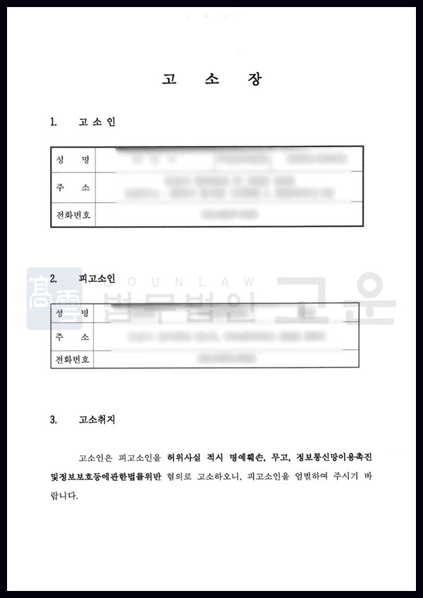 추가적으로 B가 A에게 지속적으로 수십 차례 자신을 스토킹하지 말라고 문자나 전화등으로 연락하며 협박한 사실을 바탕으로, B에게 정보통신망법 위반 혐의도 포함하여 수사기관에 고소장을 제출하였습니다.