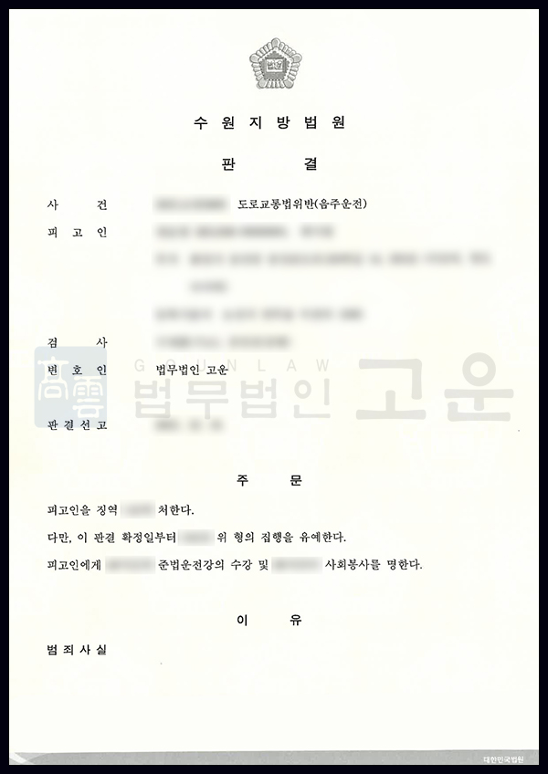 그 결과 재판부는 A에게 집행유예 판결을 내렸습니다고, 두 차례의 음주운전 처벌 전력이 있음에도 불구하고, 고운의 적극적인 노력으로 실형을 피하고 집행유예 판결을 받았다는데 의미가 있는 사건이었습니다. 실형을 피하고 가족의 곁으로 돌아갈 수 있게 되었다는 사실에 A는 매우 만족하였습니다.