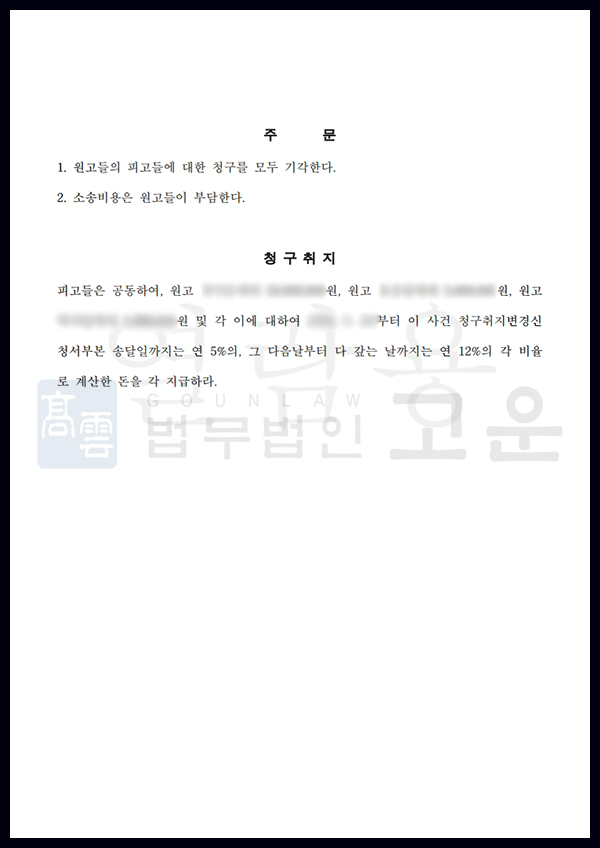 자칫 잘못하면 C의 책임이 인정되어 억울하게 손해를 배상할 수도 있는 상황이었으나, 고운의 적절한 대처를 통해 전부 승소한 의미 있는 사건이었습니다. A, B 역시 결과에 매우 만족하였습니다.