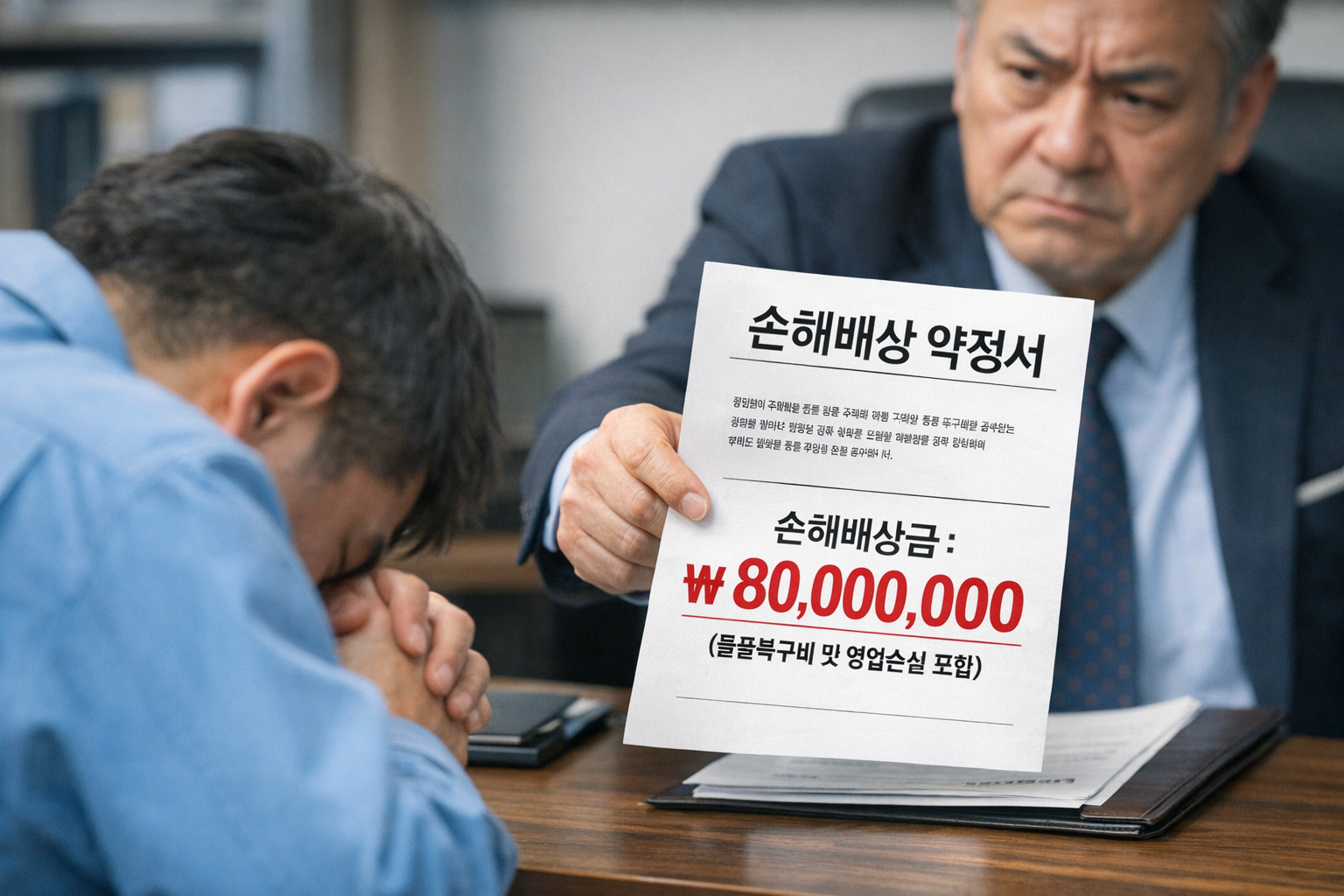 의뢰인은 회사 사장님께 연거푸 사과하였지만, 사장님은 분이 풀리지 않았는지 의뢰인에게 물품복구비용과 영업손실을 포함한 약 8,000만원 상당 손해배상약정서에 서약할 것을 요구하였습니다.