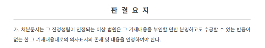 자필 서명한 처분문서는 본인이 직접 서명했음을 인정하는 이상 법원은 그 기재내용을 부인할 만한 분명한 반증이 없는 한 그 기재내용대로 내용을 인정하여야 합니다(대법원 1994. 10. 11. 선고 93다55456 판결 등). 이것을 처분문서의 강력한 증명력이라 합니다.