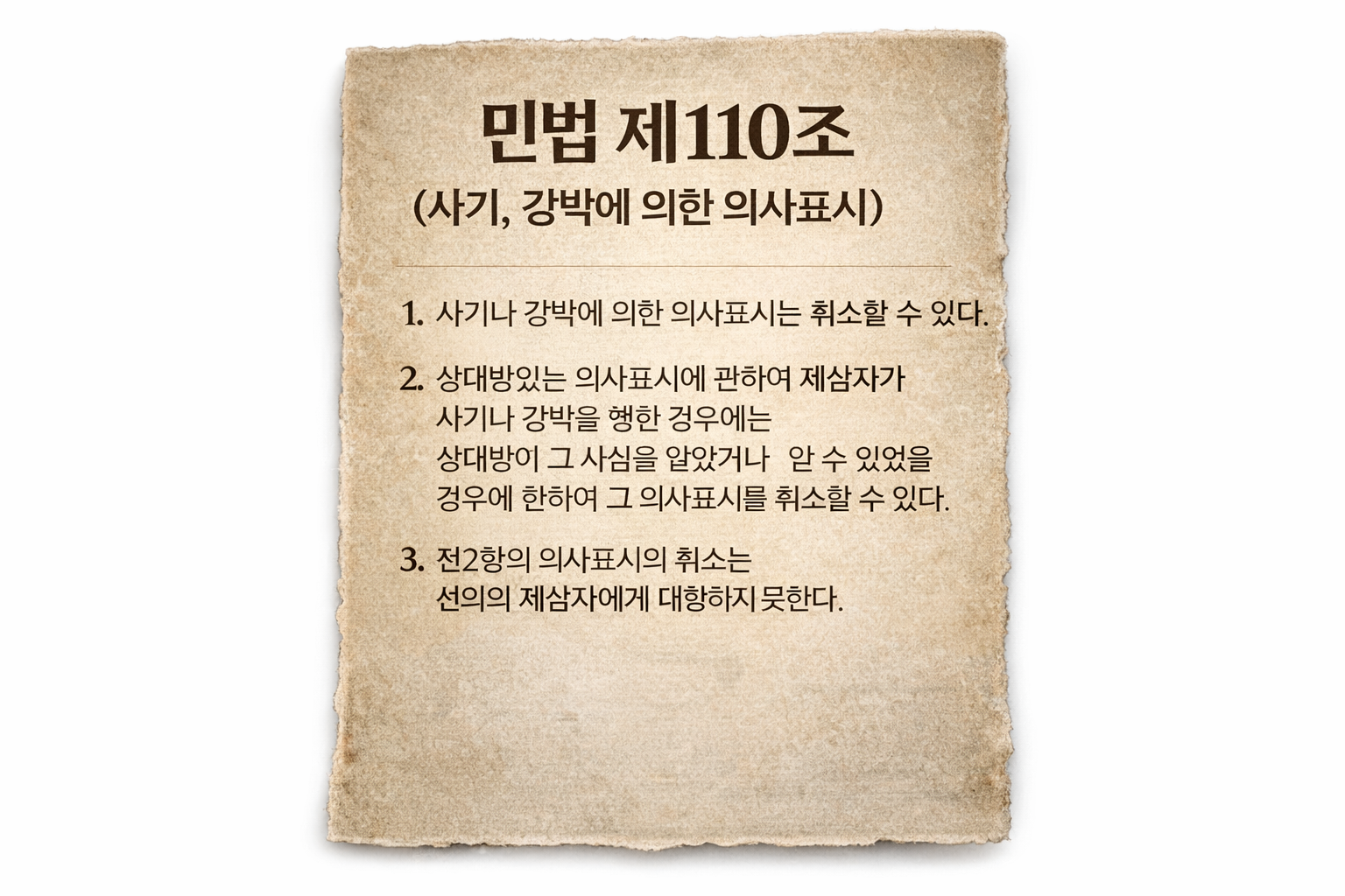 한편 무언가에 서명을 했다 하더라도 그것이 강압에 의한 것이었다면 강박에 의한 의사표시로서 취소할 수 있습니다(민법 제110조). 여기서 강박행위란 표의자로 하여금 공포심을 유발시키는 모든 해악의 고지 행위를 말합니다.