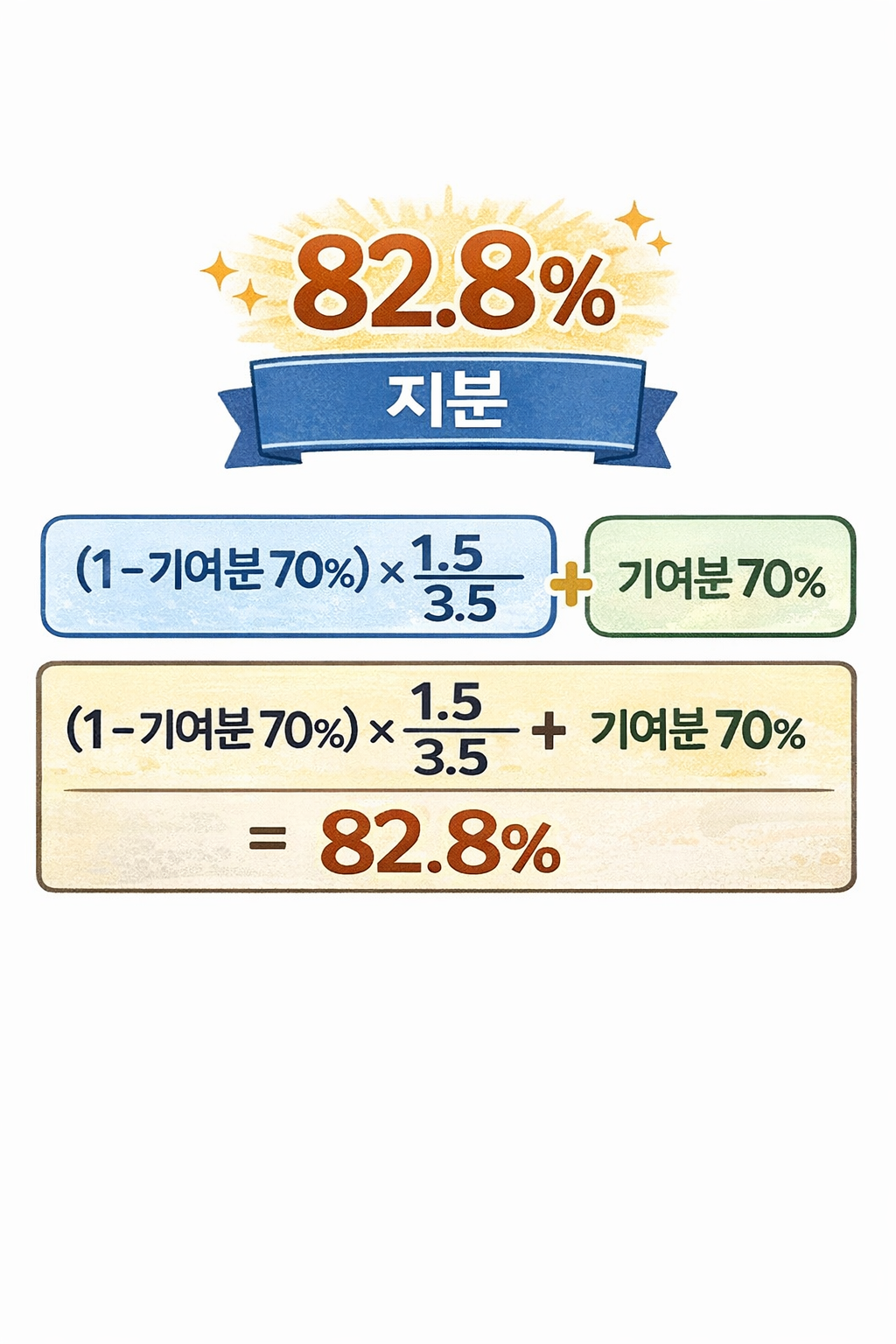 기여분으로 70%를 인정받게 되면, 의뢰인은 전체 상속재산의 82.8%를 받게 되는 것입니다.