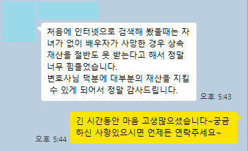 결국 의뢰인은 전체 상속재산인 약 6억 원 중 약 5억 원을 상속받게 되었고, 오랜 기간 어렵게 모은 재산을 지킬 수 있게 되어 매우 만족하셨습니다.