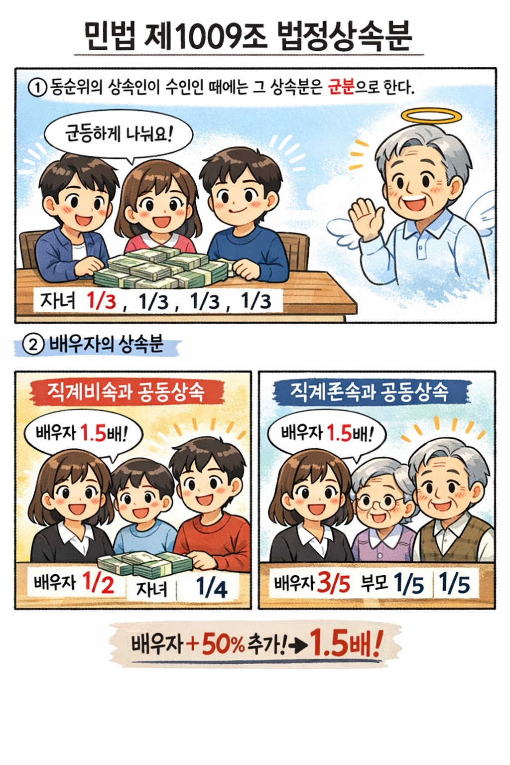 이때 각 상속인들의 상속분은 1.5:1:1이므로, 본 사건의 경우 의뢰인이 42%, 망인의 부모가 58%(부와 모가 각 29%)정도를 나눠갖게 됩니다.