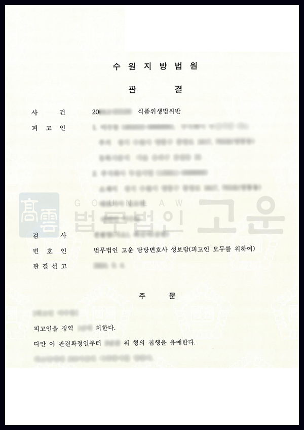 가. 식품위생법 위반의 경우 사안에 따라 다수의 피해자가 발생할 수 있고, 다수의 피해자들에게 질병 및 기타 신체적 상해를 발생시킬 수 있는 사안이기에 중하게 여겨지는 사건입니다. 경우에 따라 초범이라도 실형까지 받을 수 있기에, 혐의를 받게 될 경우 적극적인 대처가 필요합니다.