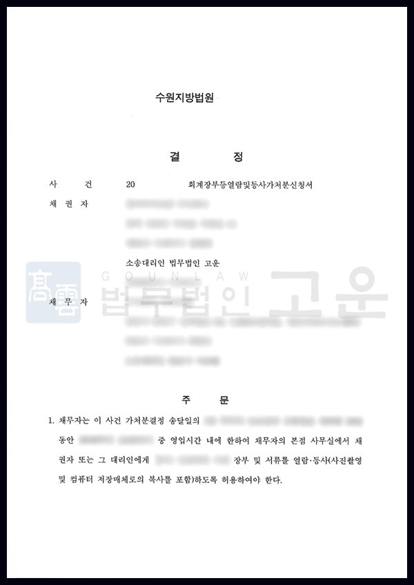 법원 재판부는 법무법인 고운의 주장을 받아들였고, 회계장부 등 서류 열람등사를 요구할 A사의 피보전권리 및 보전의 필요성을 인정하였습니다. A사는 주주로서의 권리를 지키지 못하는 것은 물론, 자신의 투자자본이 손실되는 것을 가만히 지켜볼 처지에 놓였으나 고운의 조력으로 그러한 상황에서 벗어날 수 있어 의미가 있는 사건이었습니다.