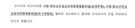 [B 측이 제출한 고소장 내용 중 일부 발췌]