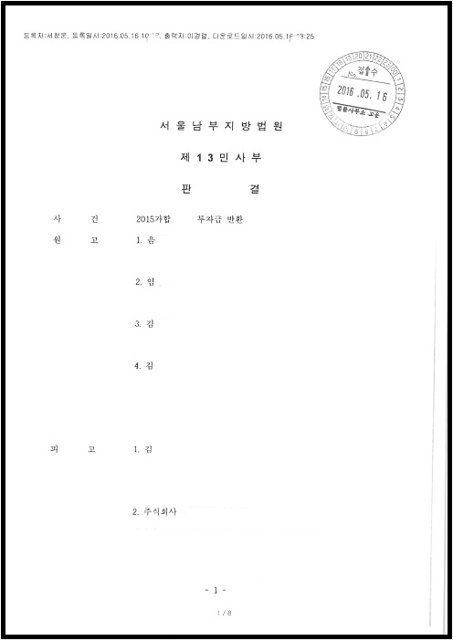 원고 4인은 피고들에게 '투자금 반환약정이 있었고, 투자계약이 해지되었으므로, 투자한 2억 500만원을 반환하라'는