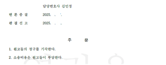 법원은 법무법인 고운의 주장을 대부분 받아들여, 공동상속인들 간의 실질적인 형평을 고려하였을 때 의뢰인이 아버지로부터 증여받은 부동산 전체를 특별수익에서 제외하였고, 의뢰인이 아버지로부터 현금을 증여받았다는 등의 나머지 원고들 청구 또한 배척하였습니다.