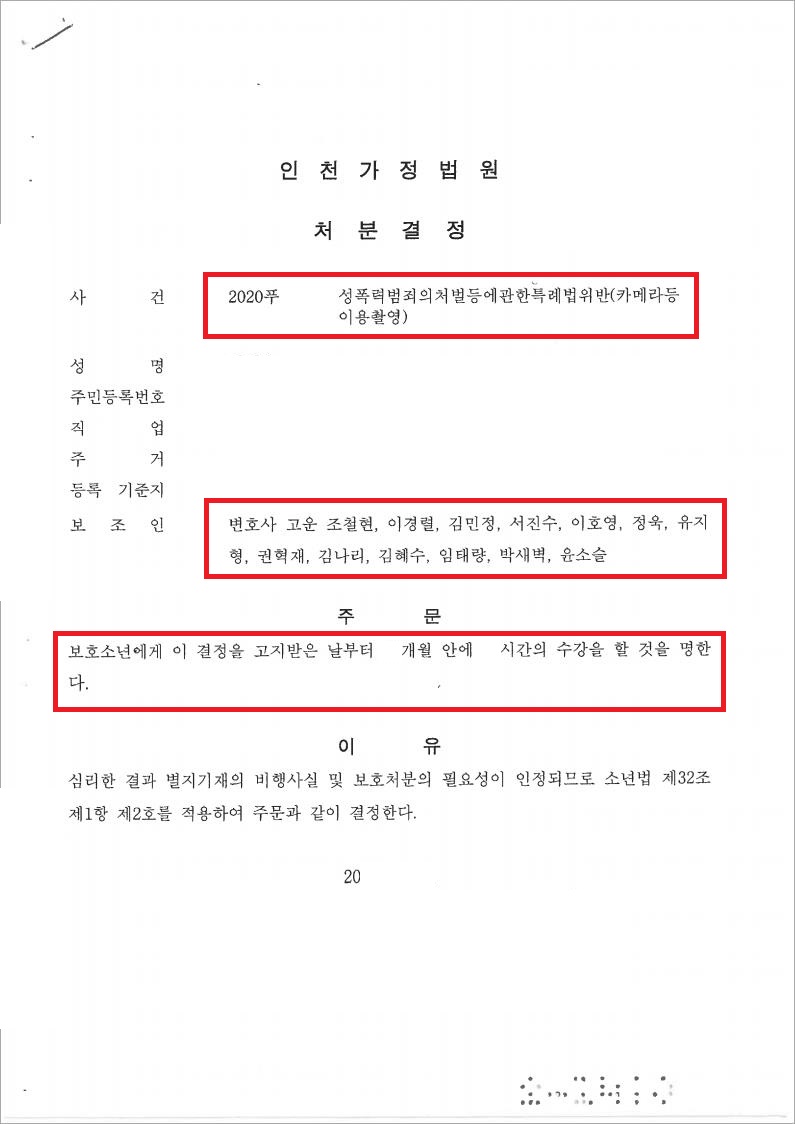 재판부는 의뢰인이 잘못을 모두 인정하고 반성하고 있다는 사실과 법무법인 고운의 주장을 상당 부분 받아들여 낮은 수위의 2호 보호처분을 내렸습니다. 의뢰인도 결과에 매우 만족하였습니다.
