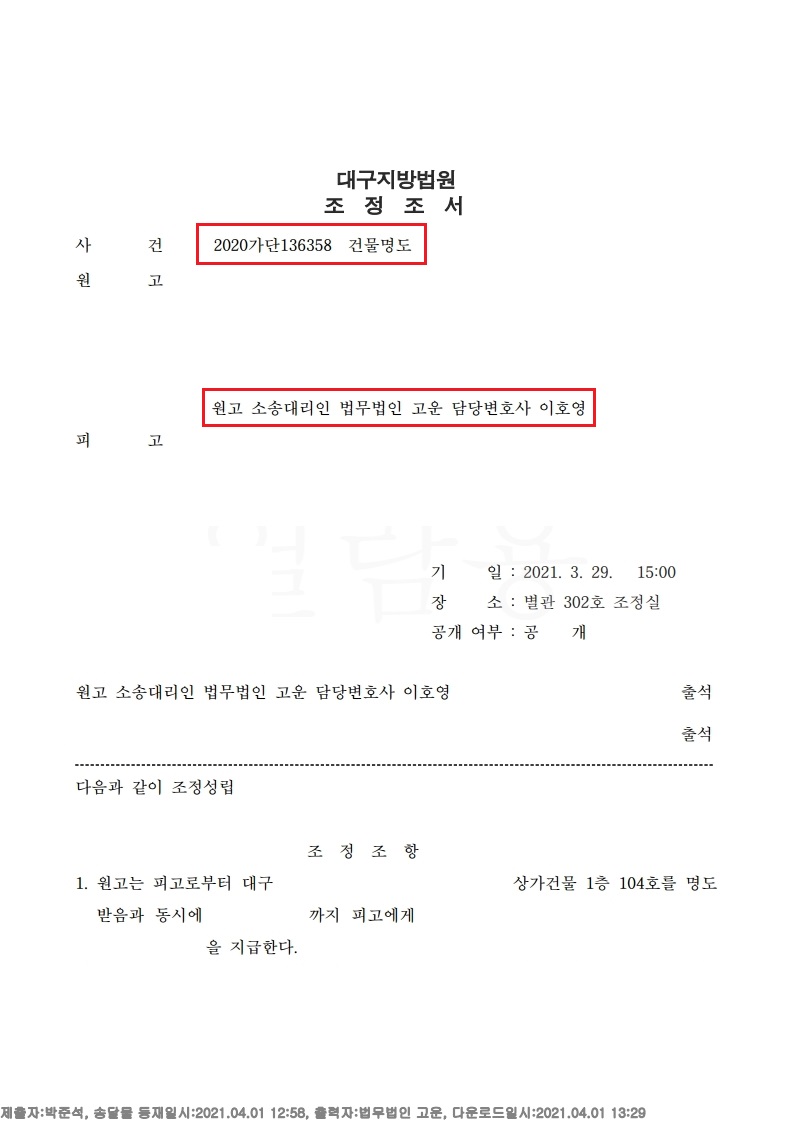 법원 재판부는 법무법인 고운의 주장을 대부분 받아들였고, 의뢰인 A신탁사가 상대방 B씨에게 청구한 건물인도 소송에서 원고는 권리 승계에 따라 임대인의 지위에 있는 부분 및 임대차계약이 종료 된 부분을 인정하여 원고에게 해당 부동산을 인도 하라고 결정 하였고, 당사자들 간 상소제기 없이 사건 확정 되었습니다. 이에 의뢰인 A신탁사는 소송 결과에 매우 만족하셨습니다.